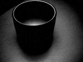 | The cup is sitting on the corner of my computer table. The lighting for the pictures comes from a 75 watt table lamp with a shade, and a 150 watt swing-arm lamp. You can see the lamp in a stop-motion video. | ![]() |